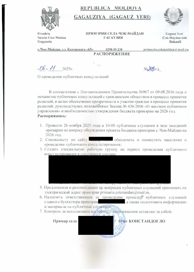 Ждём Вас 26 ноября в 10:00 часов в зале заседаний примэрии Чок-Майдан для проведения публичных консультаций в процессе чего будут приняты важные решения.
