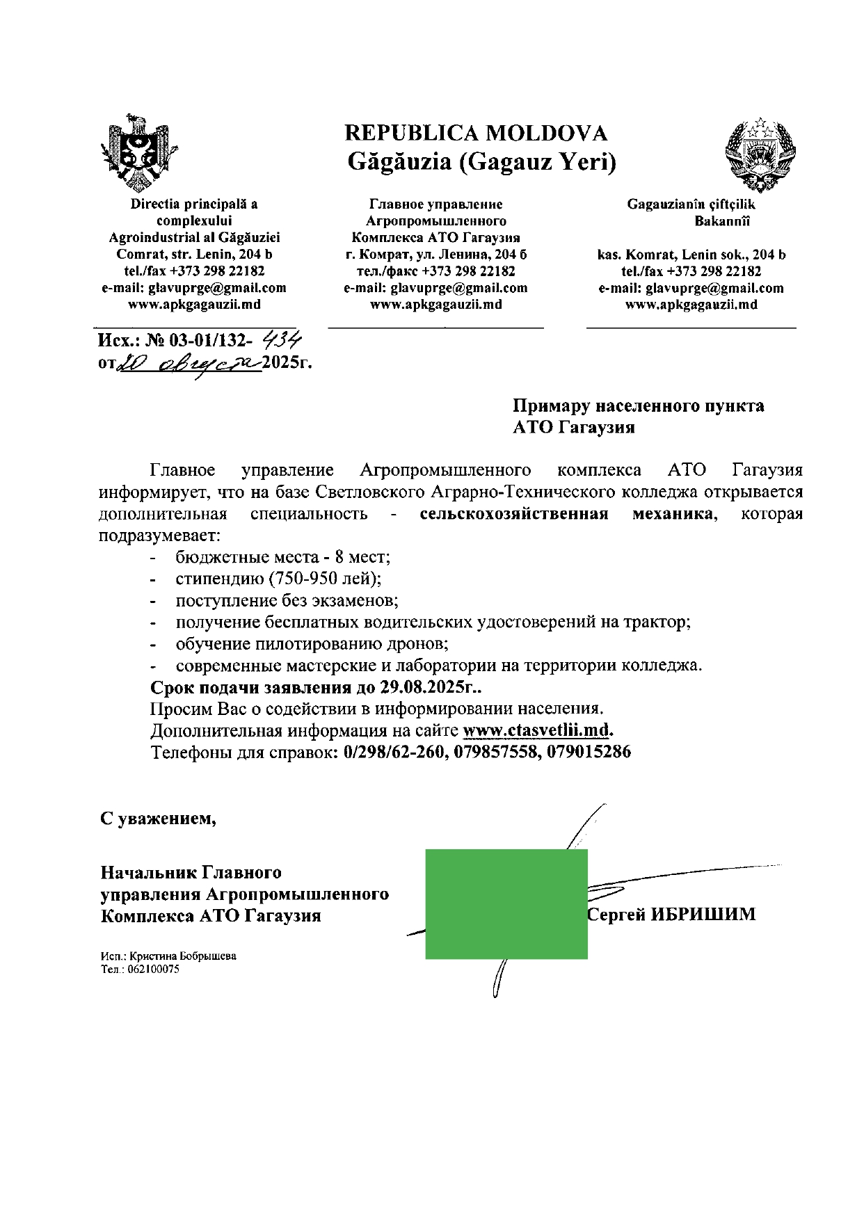Примария Чок-Майдан, ул. Котовского , 65, с. Чок-Майдан, MD-3818, АТО Гагаузия, Молдова © 2017-2023 г. Все права защищены.