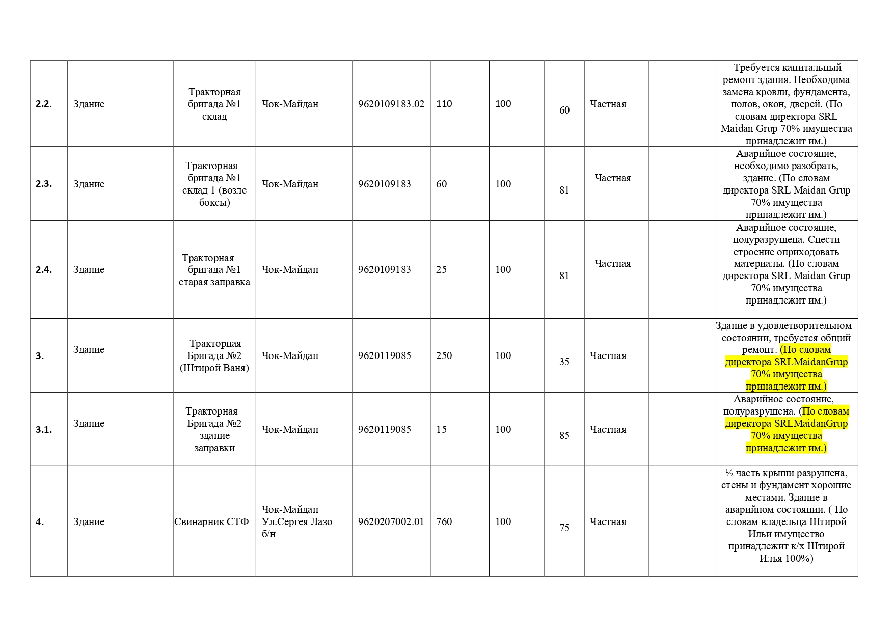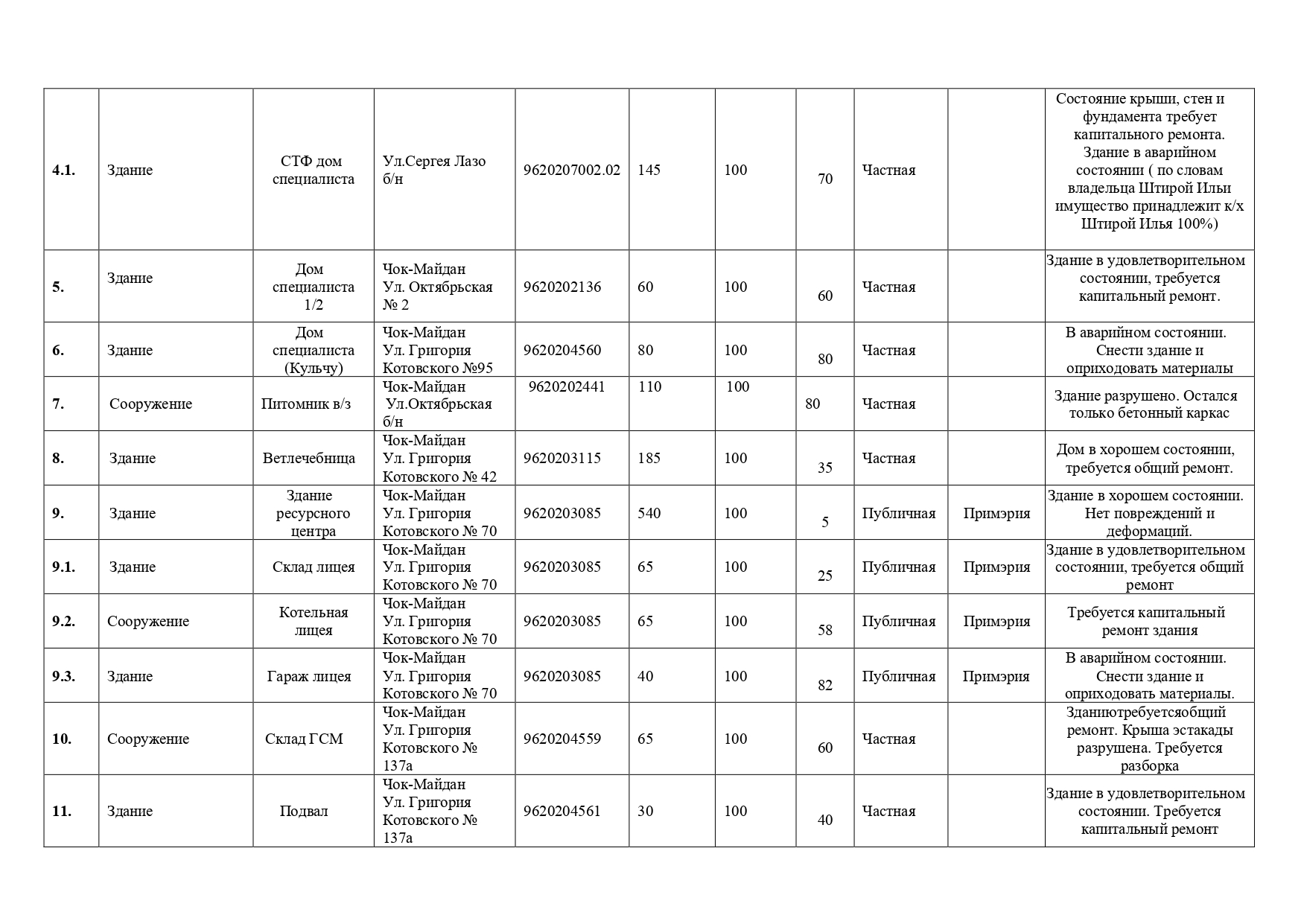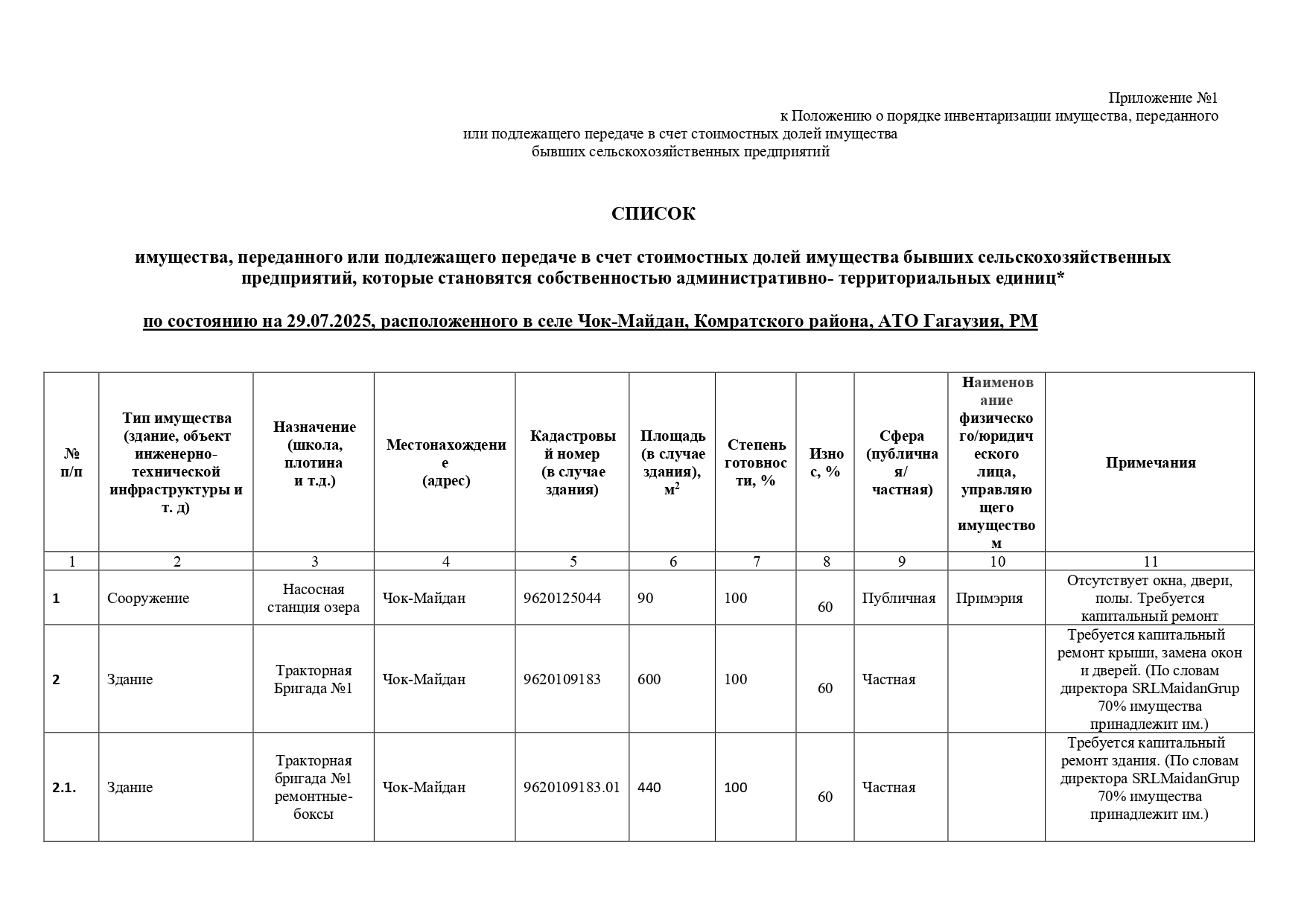 Список имущества прилагается в приложении №1.
